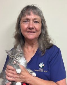 Karen grew up in Lamar, Missouri, and relocated to the Ozark area in 1986. After dedicating 32 years to working for the state of Missouri, she retired and joined the clinic as a kennel tech before transitioning to the role of Client Care Specialist. Karen is a proud dog mom to three pups named Cletus, Eloise, and Edna, and she enjoys taking them on long walks.